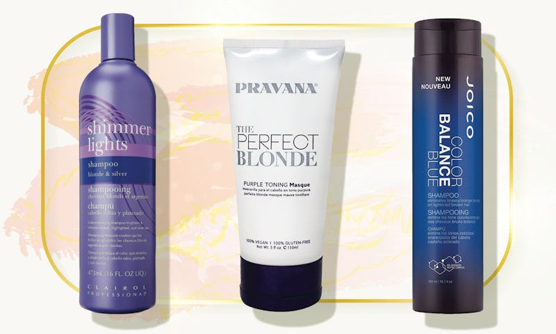 If you're new to lightening your hair and haven't used a toning product before, it's true that you may be better off going to the salon for a touchup. "I always recommend going to a professional for any color service," Mane Addicts hair stylist Sienree Du tells Bustle. "But if you must," Du says, "Using a purple shampoo and leaving it on for a few extra minutes definitely helps. There's also toning conditioners and masks that you could use and you could kill two birds with one stone and treat your hair while toning it."
